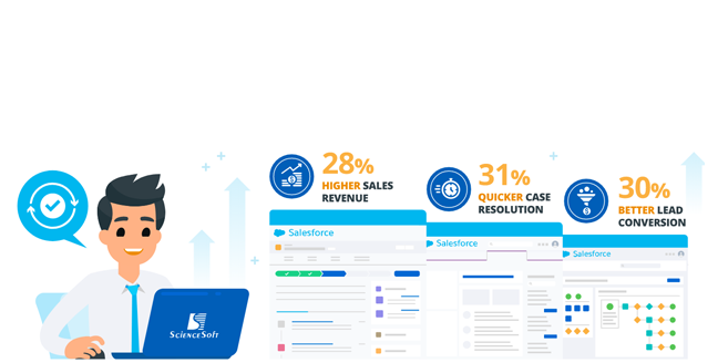 Salesforce consulting services are aimed to support your sales, marketing and customer service needs. We apply our ample CRM consulting experience to help companies in professional services, retail, IT, manufacturing, finance and banking, healthcare, and other industries benefit from Salesforce use.
